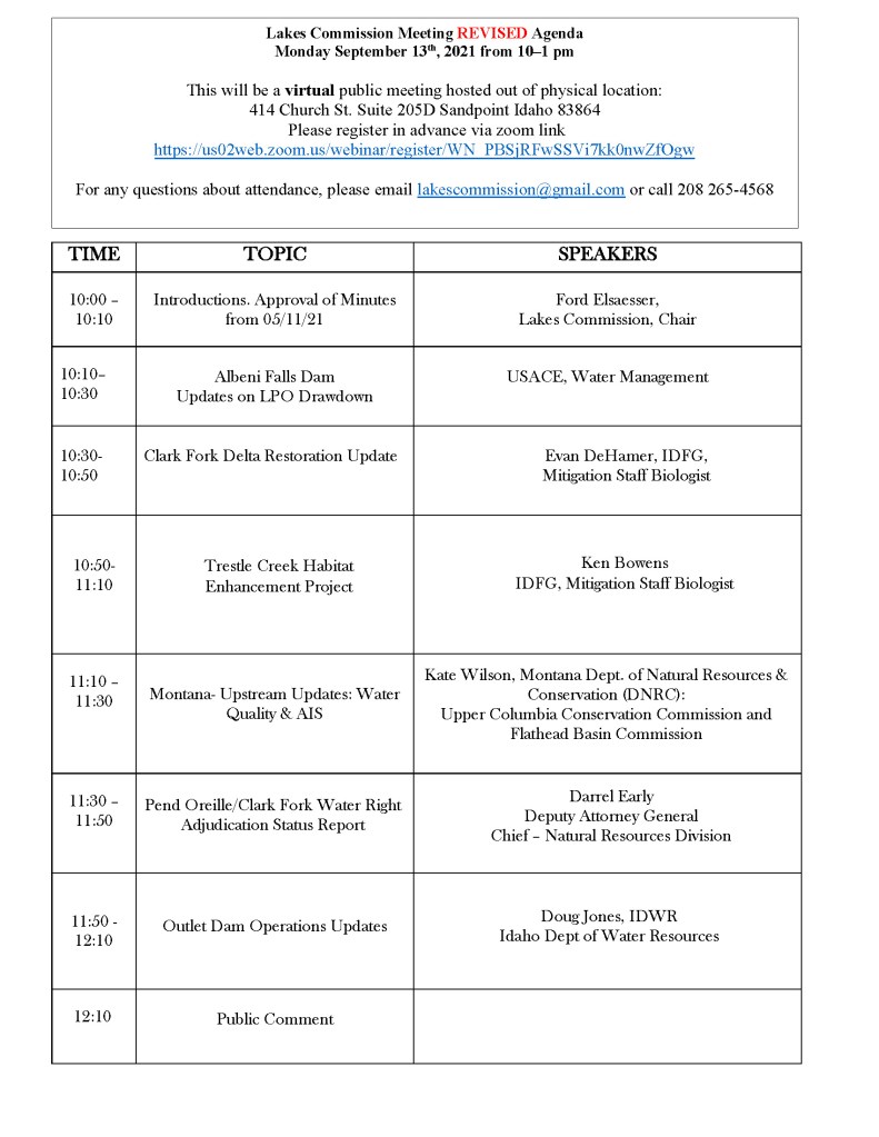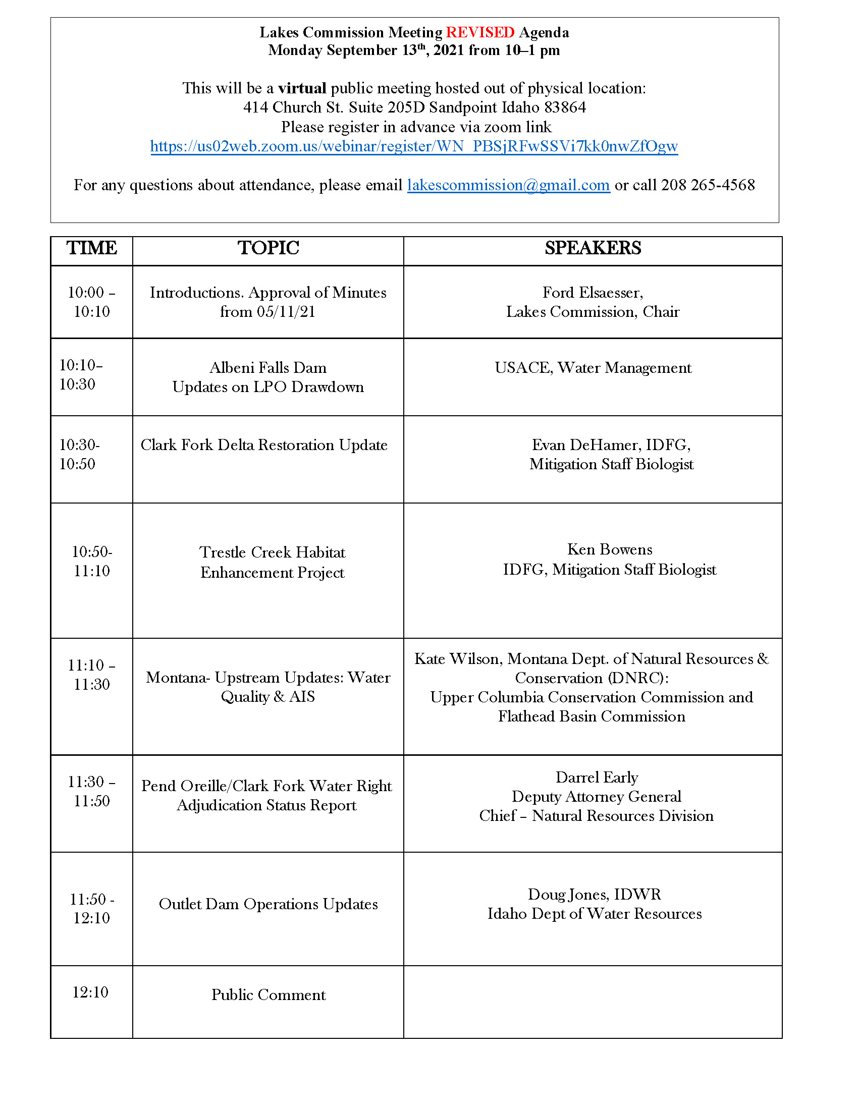 Lake Pend Oreille, Pend Oreille River, Priest Lake and Priest River Commission
